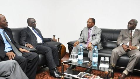 9 November 2011 - The Deputy of the Special Representative of the Secretary-General for Guinea-Bissau, Gana Fofang, and Angolan secretary of State for External relations, Manuel Augusto (third, from left), today met in Bissau to discuss their cooperation for Guinea-Bissau.