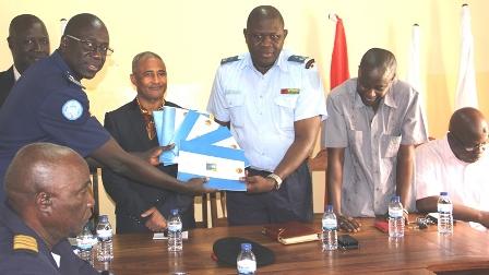 13 March 2015 - The handover ceremony of five volumes of the Model Police Manual, out of 10, in a total of 1.500 copies today took place at the headquarters of the Public Order Police (POP), in Bissau, with the support of UNIOGBIS.The ceremony was attended by POP National Commissioner, Brigadier General Armando Nhaga, and UNIOGBIS Police Senior Counsellor, Colonel Doudou Sail, among other guests.