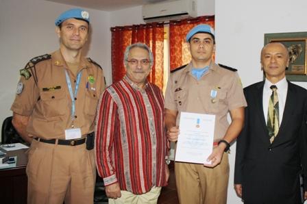 19 de Novembro de 2013 - The Special Representative of the Secretary-General (SRSG) of the United Nations, José Ramos-Horta, awarded on Tuesday, with the UN medal for Peace, two police officers from Brazil and one from Cape…