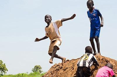 Children playing in new protection site next to UN House in Juba. About 100 people move here daily from Tomping base. Photo: UNMISS/John Mcilwaine