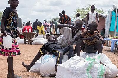 Food distribution at UNMISS Tomping protection of civilians area in Juba on 26 June. Photo: UNMISS/John Mcilwaine
