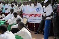 A drama group in Bentiu, Unity State, performing in a play about torture. The Day in Support of Victims of Torture, a crime under international law, is commemorated on 26 June. Every day, women, men and children are tortured…