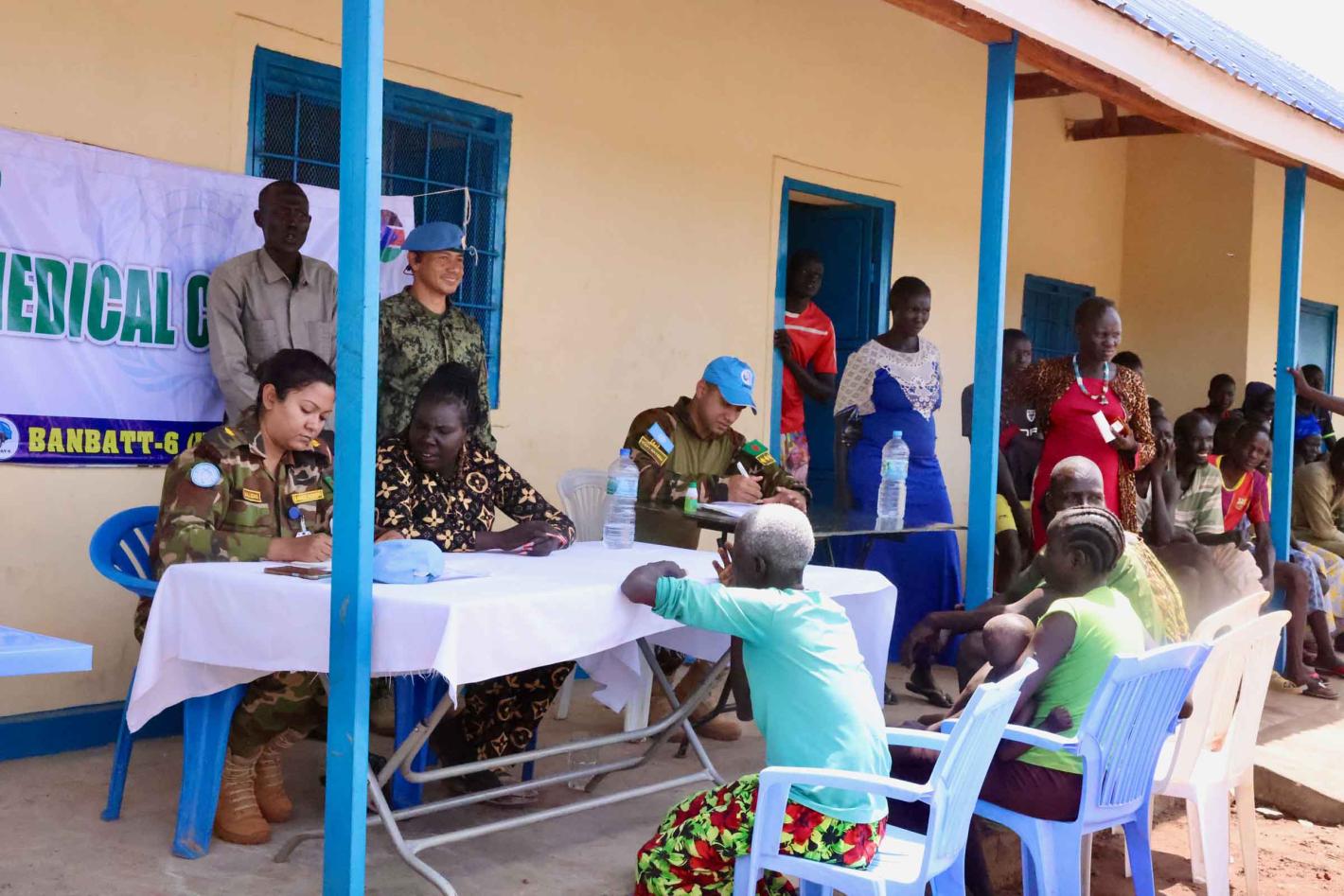 Bangladeshi peacekeepers serving for peace in Kuajok continue to win hearts, boost confidence and build trust with host communities. Recently, they handed over school supplies to students in remote areas; gave free medical checks to patients in Kuajok State Hospital and State Prison; distributed sewing machines to help upskill the incarcerated; and built numerous shelters for local police to help them continue upholding the rule of law, even during inclement weather. Photos by Zejin Yin/UNMISS
