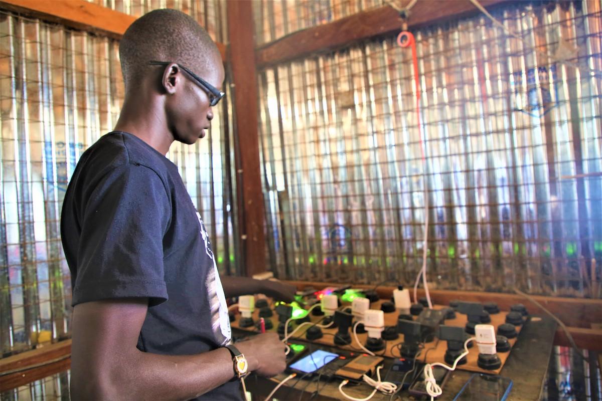 Charging customers' phones by using UNMISS-funded solar panels help peace committees in Lakes buy fuel for motorbikes, also handed over by the peacekeeping mission. Photos: Nina Zubovic Vignjevic/UNMISS