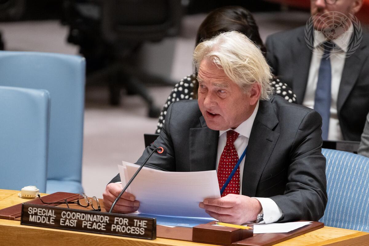 Tor Wennesland, Special Coordinator for the Middle East Peace Process, briefs the Security Council meeting on the situation in the Middle East, including the Palestinian question. (UN Photo/Eskinder Debebe - 28 November 2022)