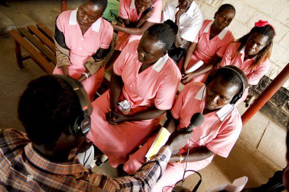 UN Radio Miraya journalist speaking with midwife trainees at Juba Teaching Hospital. South Sudan joined the global community in celebrating International Day of the Midwife on 5 May. Photo: UNMISS/Isaac Billy. Click for…