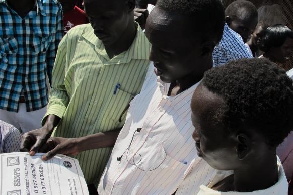 11 November 2012 - To make reporting crimes easier in Bentiu, Unity State, UN Police and the South Sudan National Police Service (SSNPS) distributed leaflets with 24-hour emergency phone numbers to the congregationof a…