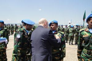 Bunia, 27 July 2011 - the Special Representative of the UN Secretary-General in DRC, Roger Meece preided a medal award ceremony during which 1842 Bangladeshi peacekeepers based in Ituri, Eastern province were awarded medals…