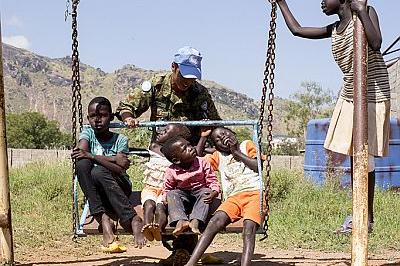 UNMISS peacekeeper playing with children in Juba. 20 November is Universal Children’s Day and this year marks 25 years since UN General Assembly adopted Convention on the Rights of the Child. Photo: UNMISS / JC McIlwaine